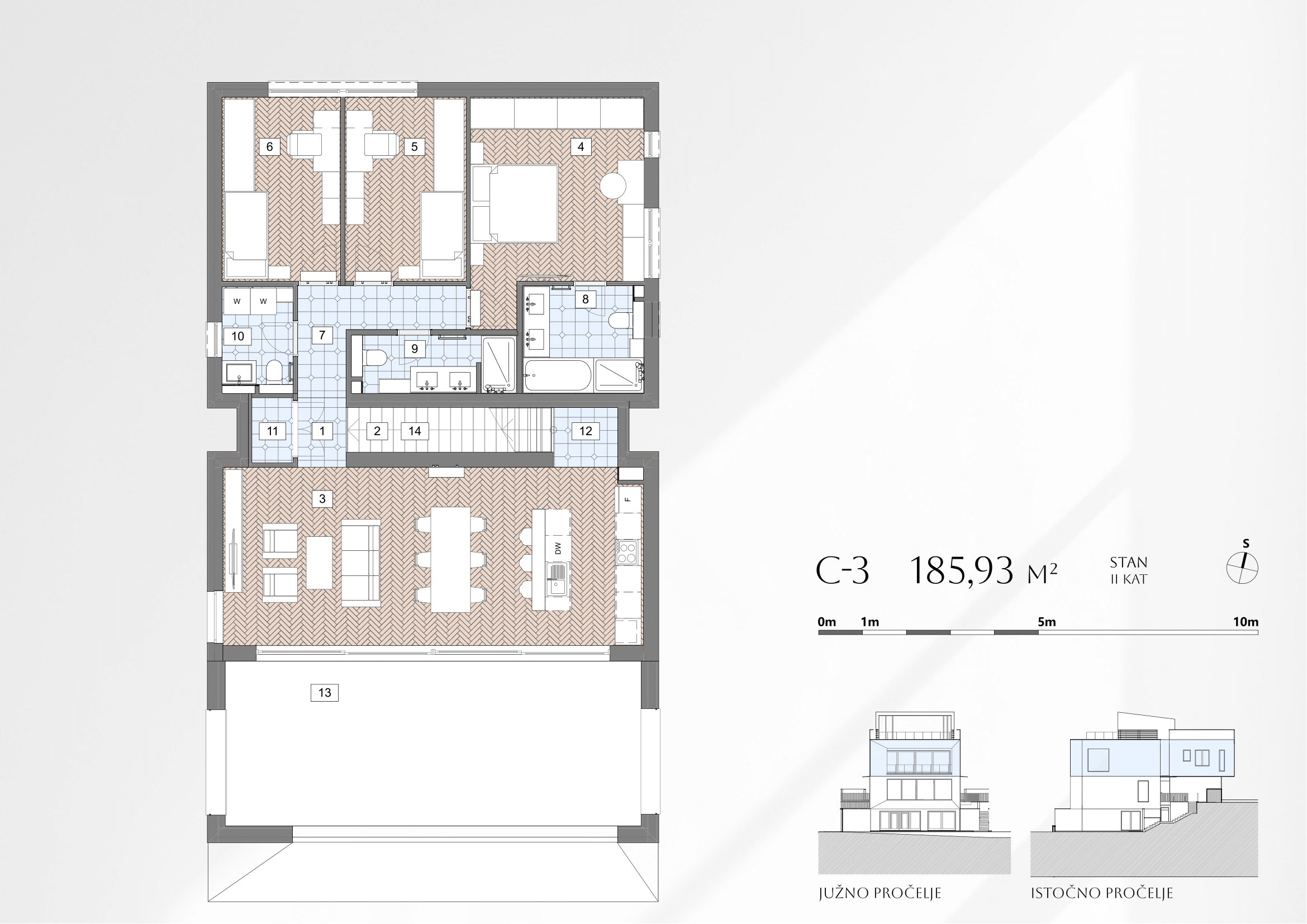Stan C-3 impresionira svojom ukupnom podnom površinom od 306,53 m² (NKP 117,03 m²) koja pruža osjećaj raskoši, slobode i potpunog komfora. U sklopu